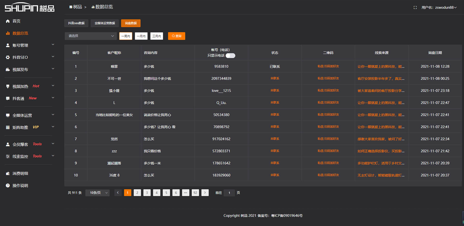 詢(xún)盤(pán)數(shù)據(jù)報(bào)表